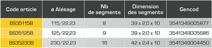 Outil : disque à segments frittésUtilisation : universel matériaux et béton faiblement arméType de coupe : à sec